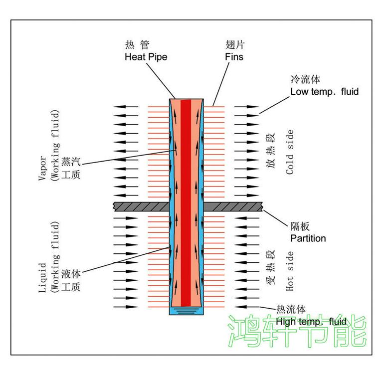 被蒸發(fā)的工質(zhì)在冷凝段放熱冷凝;