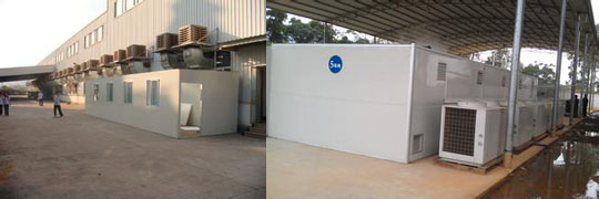 庫(kù)氏皮草20臺(tái)蒸發(fā)型冷氣機(jī)安裝完畢并正常運(yùn)行,_高溫?zé)岜煤娓善げ莅惭b完畢并正常運(yùn)行。